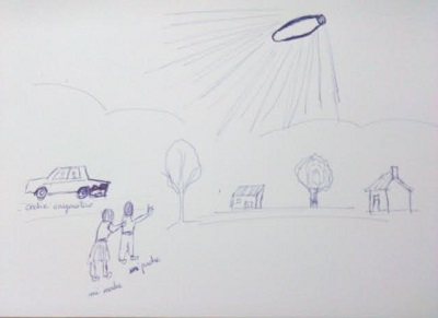 Esperanza y Carolino se encuentran volviendo a la finca. Saben que es entrar a la vivienda, coger aquello que se le ha olvidado a Esperanza y emprender de nuevo el camino a la cena a la que ya llegan tarde. La noche presenta un cielo estrellado. Por tanto, la claridad es patente y no hay mucha oscuridad. La pareja va a bordo del coche granate volviendo a su propiedad sin perder de vista el reloj para llegar a la reunión de amigos en Martínez. Es en ese momento cuando Esperanza, que va asomada por la ventanilla del copiloto divisa algo que le llama la atención en medio de aquel cielo nocturno: «Divisó una potente luz que tenía forma de tinaja de color blanco amarillento rodeada de luces de distinto color», rememora Loli Morán, hija del matrimonio testigo del misterio a quien le habían contado aquel encuentro en más de una ocasión.