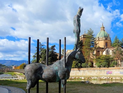 Pero aparte de esto, hay quien sitúa la tumba perdida de Alarico justo en el punto en el que convergen los ríos Busento y Crati, en plena ciudad de Cosenza. Otros sitúan la ubicación a las afueras de la ciudad, donde otra leyenda cuenta que unos ermitaños de la Orden de San Agustín se encontraron con restos de un tesoro. Eso sin olvidar a quienes emplazan el enterramiento y el botín fuera de esta ciudad italiano, decantándose por el pueblo de Bisignano… Hay hipótesis para todos los gustos. Incluso se dice que Himmler estuvo también buscando la tumba y el tesoro de Alarico por estos lares (los nazis que no falten en este tipo de búsquedas). Lo que sí sabemos es que, por ejemplo, Alejandro Dumas habló de la tumba de Alarico. O Giosué Carducchi, uno de los grandes poetas de la Italia del siglo XIX, dedica unos versos a esta leyenda. Además, hoy en día, quien vaya a Cosenza y se interese por esta historia, que sepa que en el punto donde se unen los ríos Busento y Crati, existe un monumento. Una estatua colocada en 2016, creada por el escultor Paolo Grassino, y que representa al rey Alarico y a su caballo. Todo para recordar una tumba perdida, misteriosa o, por lo menos, la leyenda que aún se cuenta sobre ella.